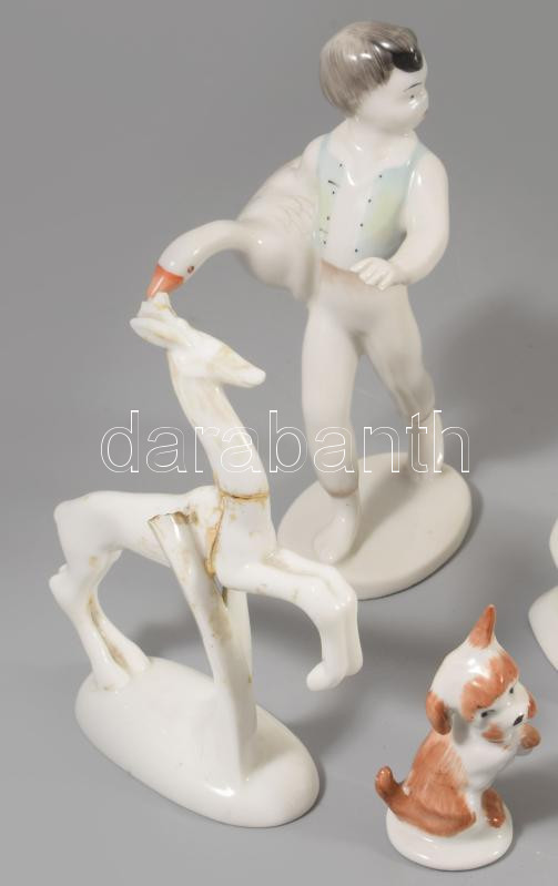 5 darab állatfigurás porcelán dísz, közte sérült Rosenthal őz, m: 13 cm alatt