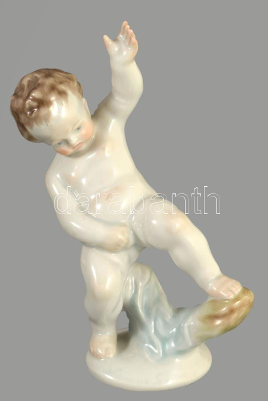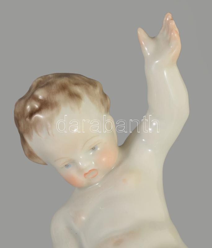 Herendi pisilő puttó. Terv.: Nemes György. Kézzel festett, jelzett, hibátlan, m: 18 cm