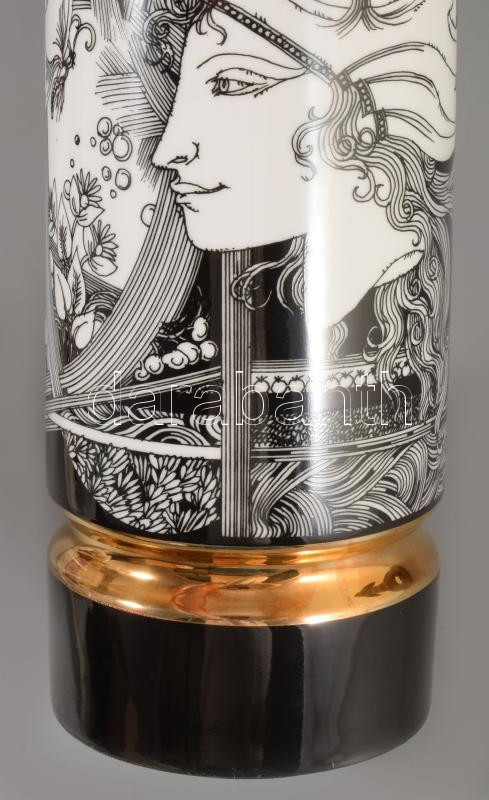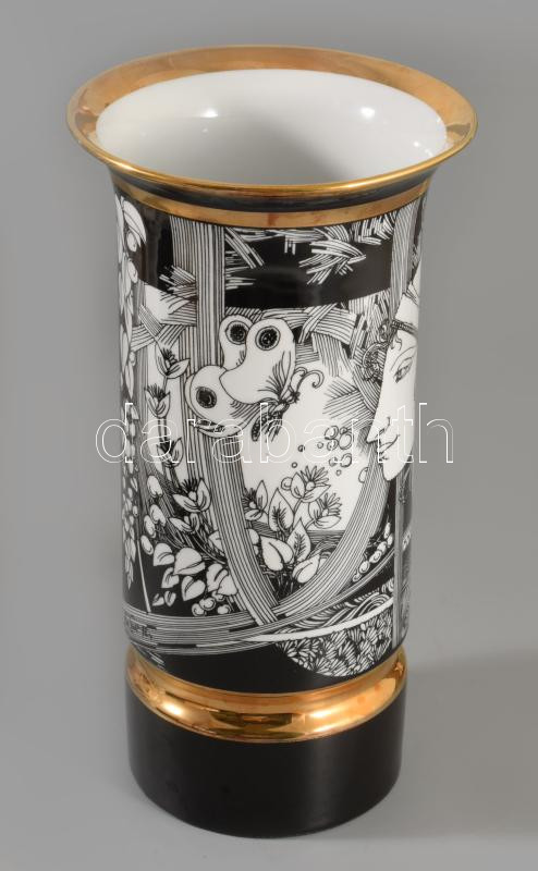 Hollóházi Szász Endre által tervezett dekorral díszített porcelán váza. Jelzett,hibátlan 26 cm