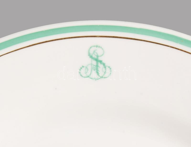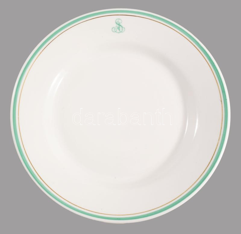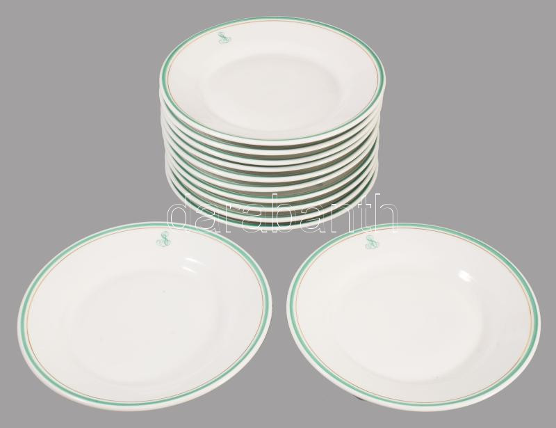 cca 1880 Nemesi monogramos 12 részes süteményes tányér készlet, jelzés nélkül, kopással, d: 19,5 cm
