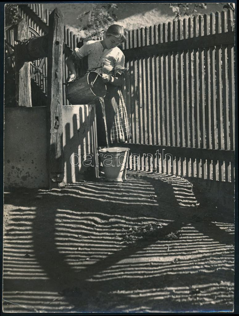 1957 Vadas Ernő (1899-1962): Vízhordó lány, a hátoldalon feliratozott, pecséttel jelzett fotó, 24x18 cm