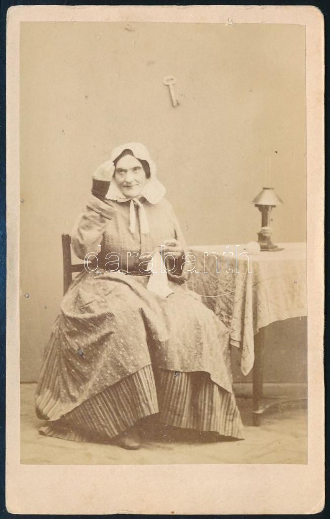 cca 1859 Johann Nestroy (1801-1862) osztrák színész, mint Frau Maxl, keményhátú fotó, 10,5×6,5 cm