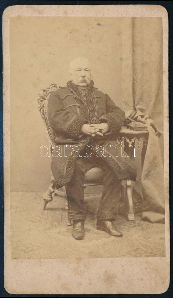 cca 1870 Lászlófalvi Eördögh Péter birtokos, keményhátú fotó Licskó műterméből, hátoldalon feliratozva, 10,5×6,5 cm