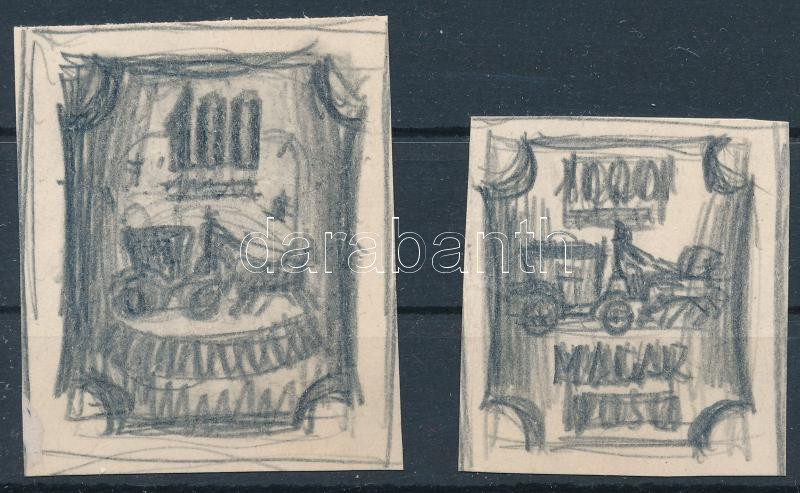 1946 Konecsni György 2 klf bélyegterv vázlata