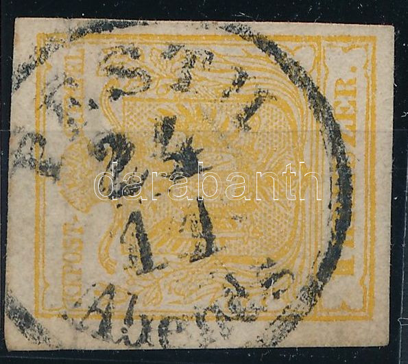 1850 1kr HP III kadmiumsárga vastag 0,11 mm papír "PESTH" Strakosch meghatározás és szignó