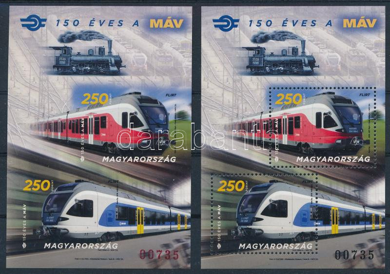 2018 150 éves a MÁV fogazott és vágott blokk azonos 00735 sorszámmal (28.000)