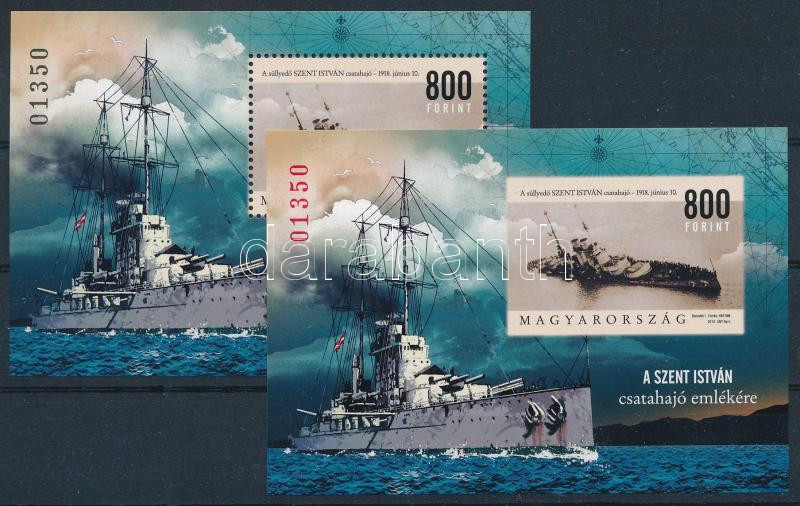 2018 Szent István csatahajó fogazott és vágott blokk azonos 01350 sorszámmal (28.000)