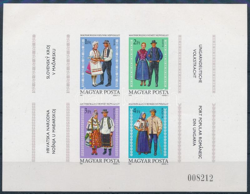 1981 Magyarországi nemzetiségek népviselete vágott bélyeg (4.000)
