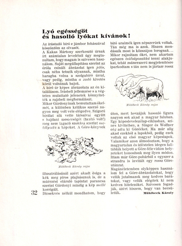 Bibliofil kiállítású, részben színesen nyomott grafikai albumunk a magyar karikatúra és könyvillusztráció 80 éves történetét mutatja be, Jankó János, Mülhbeck Károly; Byssz Róbert, Bortnyik Sándor, Fáy Dezső, Gáborjáni Szabó Kálmán és mások rajzaival, karikatúráival, Ady Endre, Móricz Zsigmond, Kárpáti Aurél és Pán Imre grafikaművészeti megjegyzéseivel. Reprezentatív albumunk közéleti és erkölcstörténeti karikatúráinak többsége az 1920-as évekből való, bibliofil kötetünkben az 1945 utáni évek meghatározó karikaturistái: Gáspár Antal, Hauswirth Magda, Kassowitz Félix is bemutatkoznak.