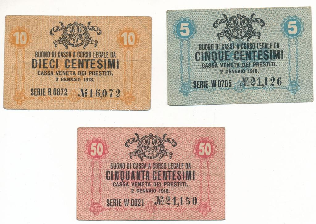 Italy 1918. Venice / Austro-Hungarian occupation 5 Centesimi + 10 Centesimi + 50 Centesimi C:F