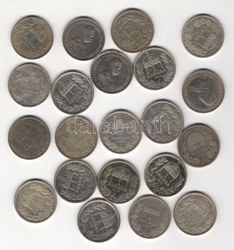 Leírás: 1893-1916. + 1896. "Ezeréves" 1K Ag összesen 21db, vegyes évszámokkal T:2,2/3