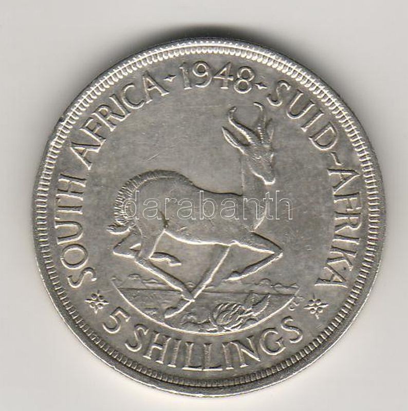 Dél-Afrika 1948. 5Sh Ag T:2 parányi ph https://www.darabanth.com/hu/53-Gyorsarveres/53.0/Numizmatika/NUMIZMATIKA-NUMISMATICS~217/Del-Afrika-1948-5Sh-Ag-T2-paranyi-ph~II104043