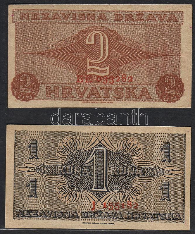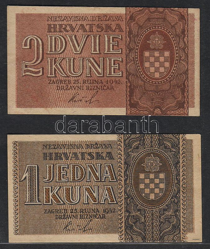 Leírás: Horvátország 1942. 1K + 2K T:I