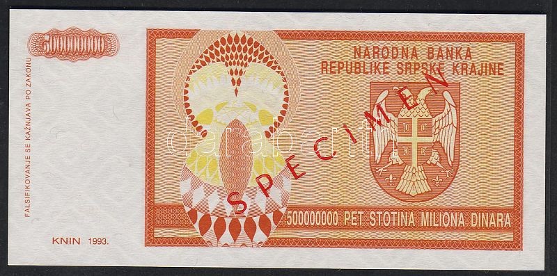 Horvátország/Krajina Szerb Köztársaság 1993. 500.000.000D "Specimen 0... https://www.darabanth.com/hu/53-Gyorsarveres/53.0/Numizmatika/NUMIZMATIKA-NUMISMATICS~217/HorvatorszagKrajina-Szerb-Koztarsasag-1993-500000000D-Specimen-000-TI~II103090