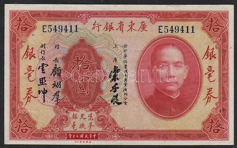 Kína/ Kwangtung Provincial Bank 1931. 10$ T:I https://www.darabanth.com/hu/53-Gyorsarveres/53.0/Numizmatika/NUMIZMATIKA-NUMISMATICS~217/Kina-Kwangtung-Provincial-Bank-1931-10USD-TI~II103112