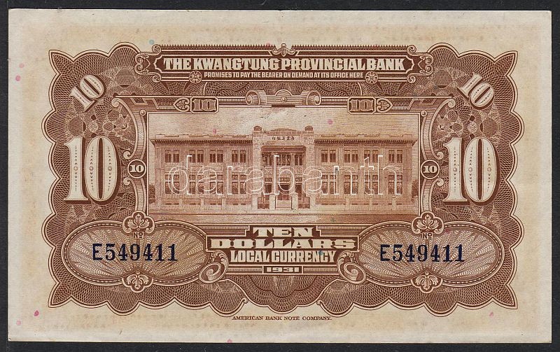 Leírás: Kína/ Kwangtung Provincial Bank 1931. 10$ T:I