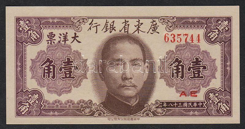 Kína/ Kwangtung Provincial Bank 1949. 10c T:I https://www.darabanth.com/hu/53-Gyorsarveres/53.0/Numizmatika/NUMIZMATIKA-NUMISMATICS~217/Kina-Kwangtung-Provincial-Bank-1949-10c-TI~II103113