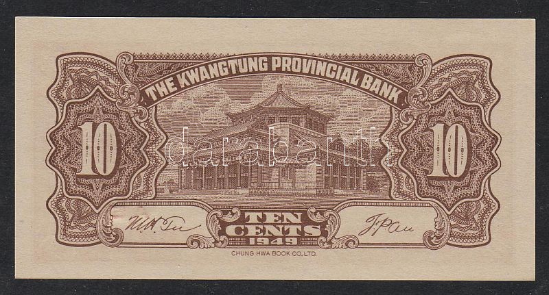 Leírás: Kína/ Kwangtung Provincial Bank 1949. 10c T:I