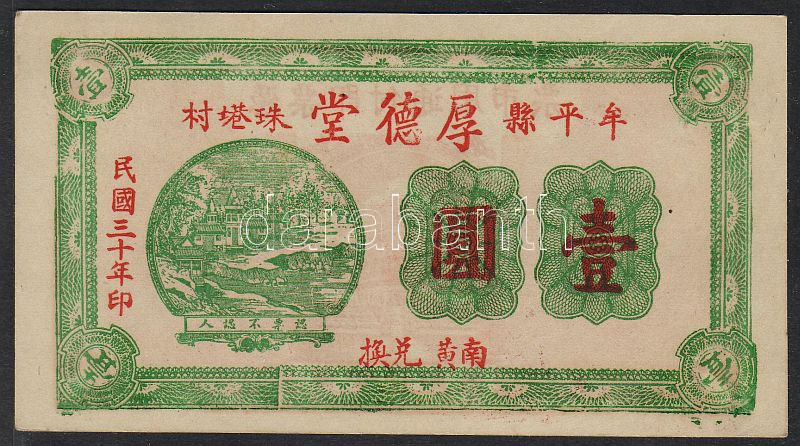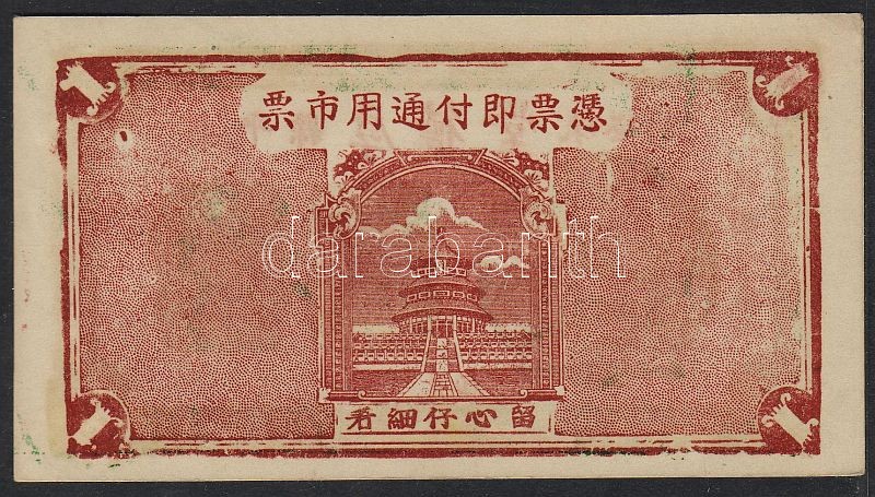 Leírás: Kína/Magánkiadású bankjegy (bank és tartomány) 1920-as évek T:I