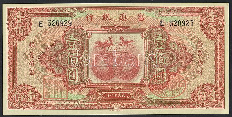Kína/Provincial Bank/The Fu-Tien Bank 1929. 100$ T:I- https://www.darabanth.com/hu/53-Gyorsarveres/53.0/Numizmatika/NUMIZMATIKA-NUMISMATICS~217/KinaProvincial-BankThe-Fu-Tien-Bank-1929-100USD-TI-~II103581