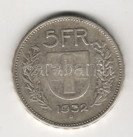 Leírás: Svájc 1932. 5Fr Ag T:2/3