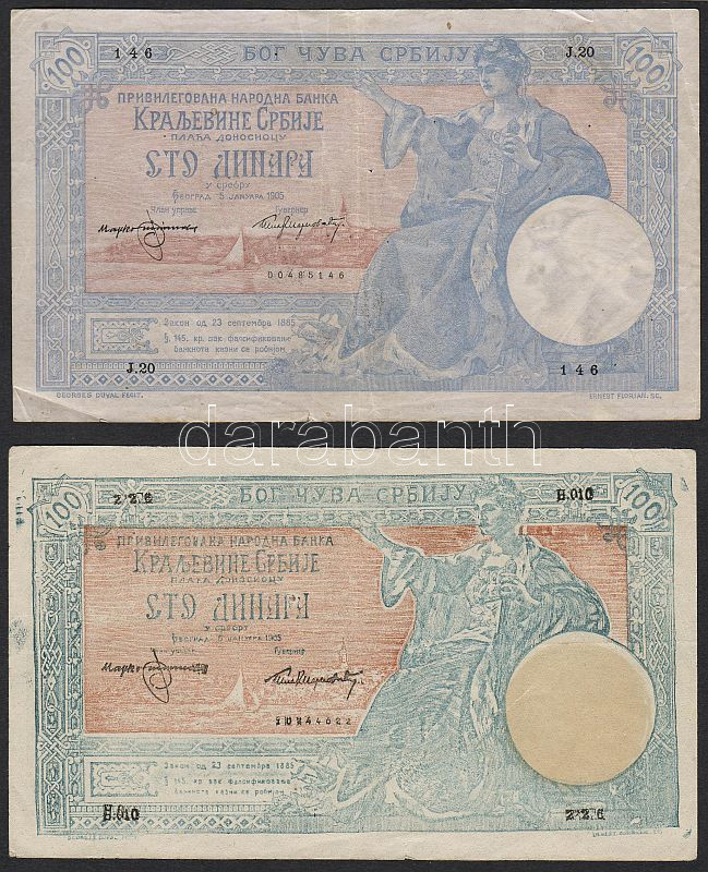 Leírás: Szerbia 1905. 100D + 100D azonos korabeli hamisítvány T:II