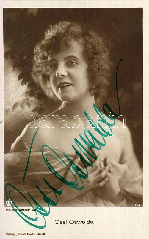 Leírás: Ossi Oswalda színésznő aláírt fotólapja