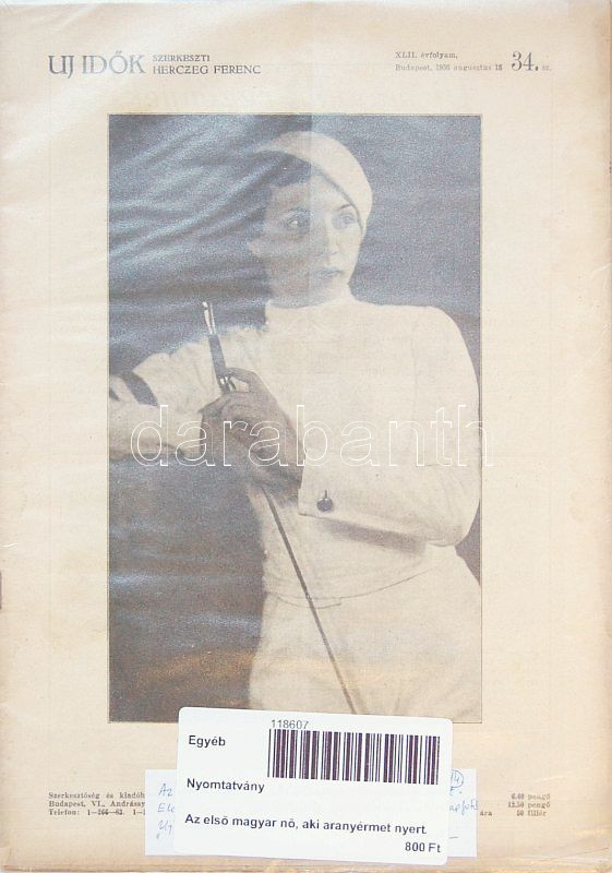 Az első magyar nő, aki aranyérmet nyert.Elek Ilona a női tőrvívás vilá... https://www.darabanth.com/hu/59-Gyorsarveres/59.0/Festmeny-mutargy-papirregiseg-egyeb/Konyv-es-nyomtatvanyok~271/Az-elso-magyar-no-aki-aranyermet-nyertElek-Ilona-a-noi-torvivas-vilagbajnoka-cimlapfoto-~II118607