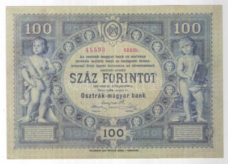 Leírás: 1886. 100Ft cseh kiadású focsimile T:I