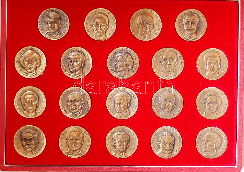 Leírás: 1979. "Tanácsköztársaság 60. évfordulója" 19db Br plakett, eredeti díszdobozban, csepeli munkás mártírok leírással
