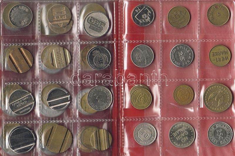 Leírás: 51db zseton, bárca, telefonérem stb. egész világ kis berakóban