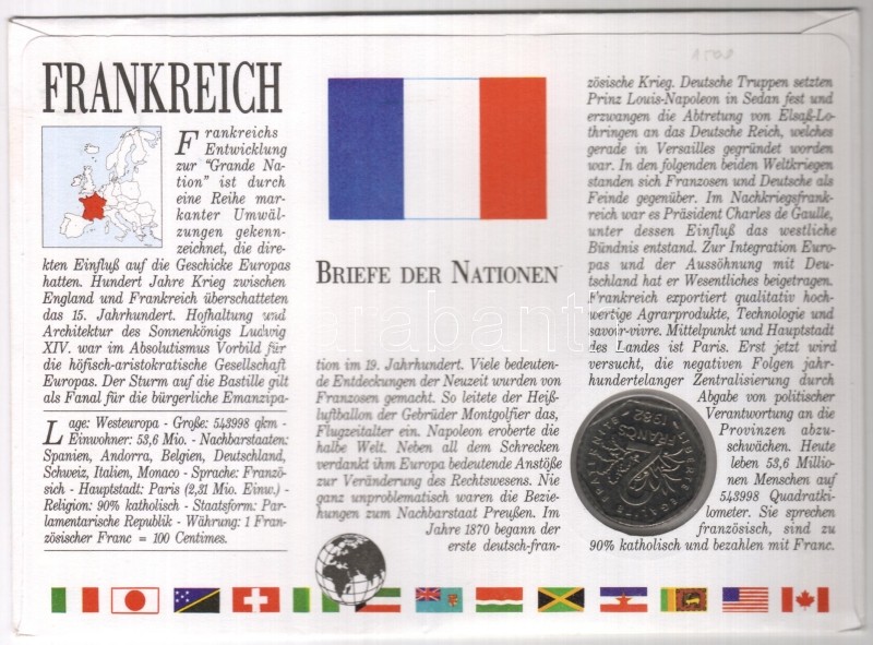 Leírás: Franciaország 1982. 2F érmés boríték, Moulin Rouge motívum