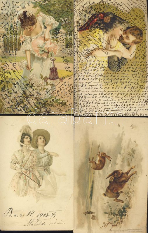 Leírás: Hölgyek, párok, 153 db képeslap sok lithoval, szignós lappal Ladies, couples, glamour, 153 cards including lithos, artist signed