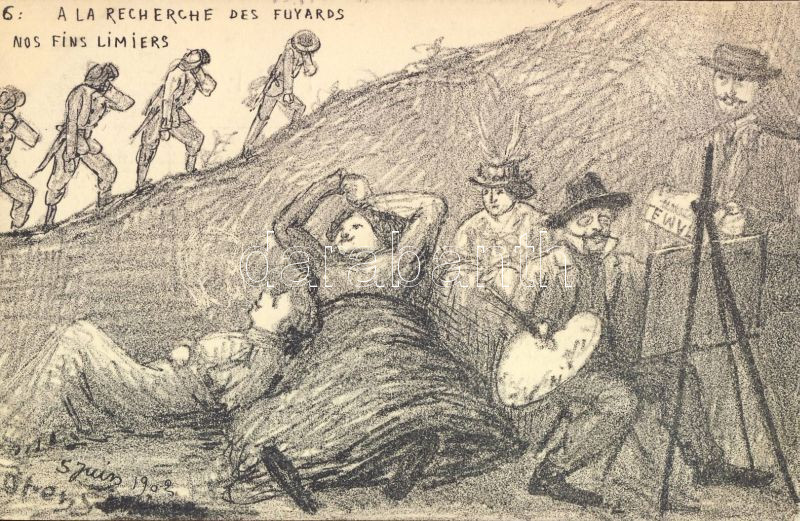 Political propaganda, satire s: Orens https://www.darabanth.com/hu/6-Nagyaukcio/6.1/Motivum-kepeslapok/Political-satire-signed-Orens~1632/Political-propaganda-satire-s-Orens~II139174