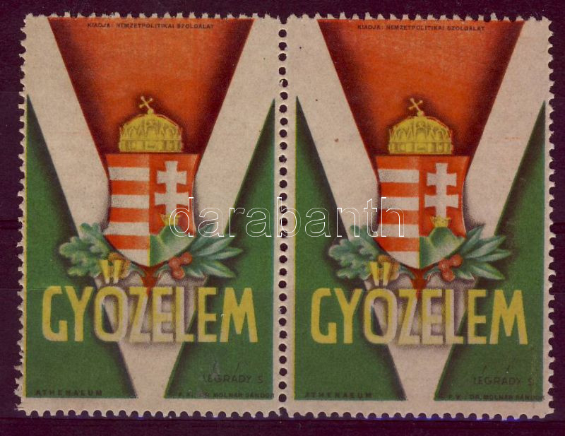 1944 Győzelem propaganda levélzáró pár / Victory propaganda label pair https://www.darabanth.com/hu/6-Nagyaukcio/6.1/Mutargy-papirregiseg/Parafilatelia-Paraphilately~1654/1944-Gyozelem-propaganda-levelzaro-par-Victory-propaganda-label-pair~II134450