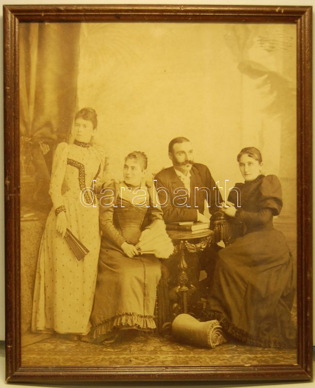 Leírás: XIX. század vége nagyalakú családi fotó keretben 27x33 cm