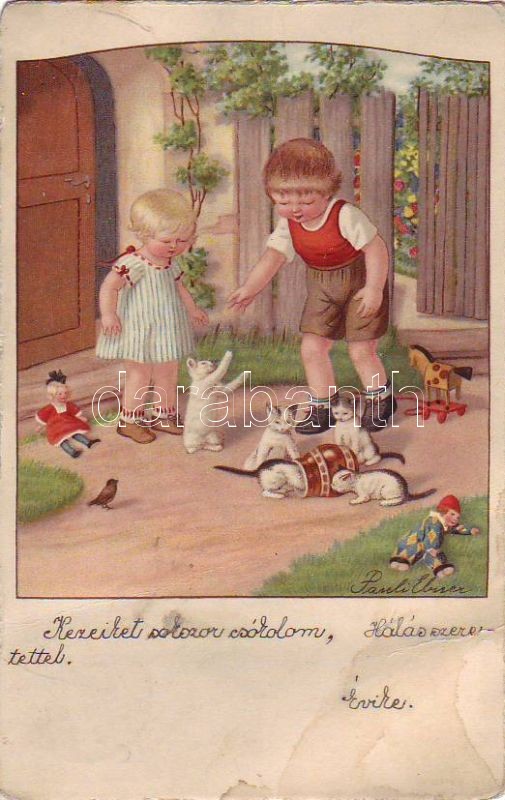6 db képeslap (benne művész) érdekes bélyegzésekkel