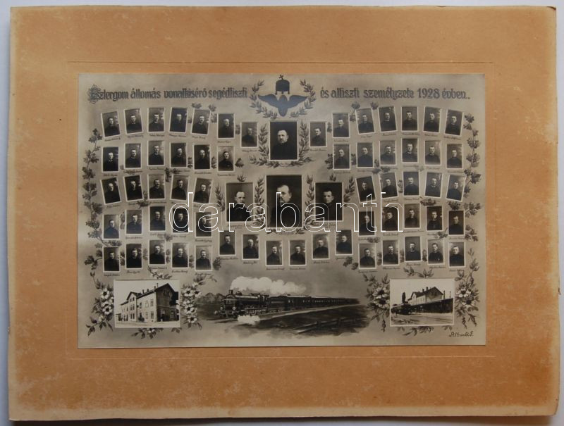 1928 Eszetrgomi állomás személyzete tablókép https://www.darabanth.com/hu/62-Gyorsarveres/62.0/Festmeny-mutargy-papirregiseg-egyeb/Foto-Photo~208/1928-Eszetrgomi-allomas-szemelyzete-tablokep~II123172