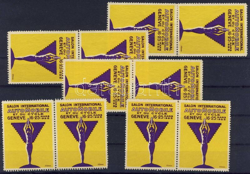 Leírás: Svájc 1928, "Salon international Automobile" Genéve, 10db ritka levélzárobélyeg