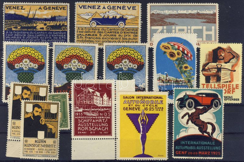 Leírás: Svájc, ca. 1910-1930, 14db különféle levélzáróbélyeg, ritka darabokkal