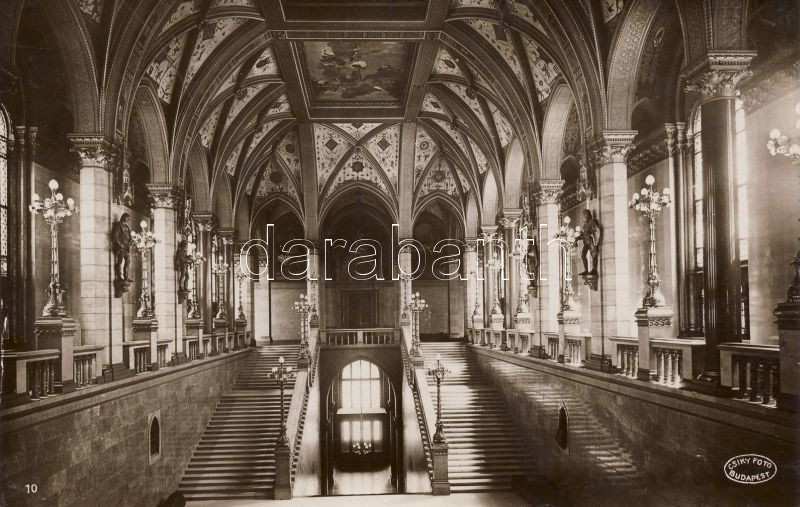 Budapest Parlament belső lépcsőháza https://www.darabanth.com/hu/62-Gyorsarveres/62.0/Kepeslapok/KEPESLAPOK-POSTCARDS~203/Budapest-Parlament-belso-lepcsohaza~II123148