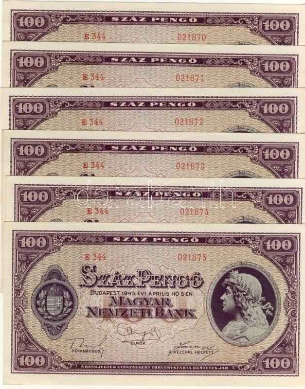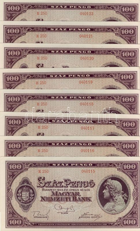 Leírás: 1945. 100P 8db+8db+6db egymásutáni sorszámokkal, összesen 22db T:I,I-