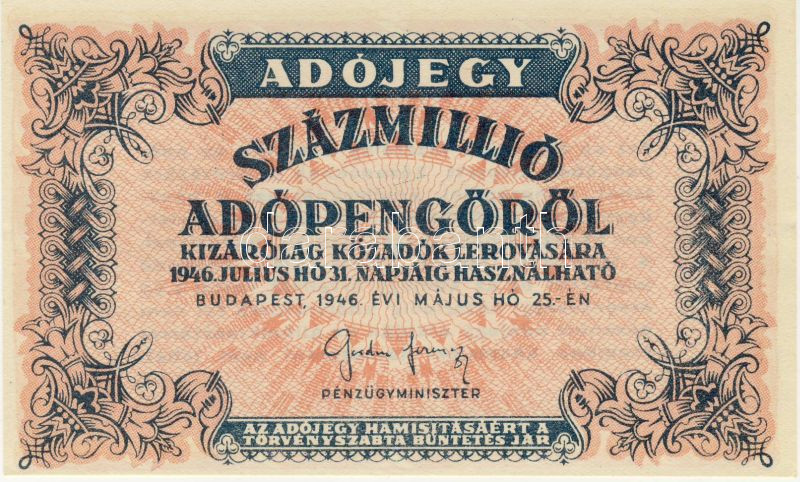 Leírás: 1946. 100.000.000AP főtípus T:I