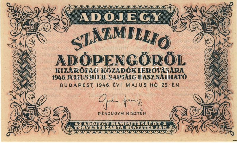 1946. 100.000.000AP hátoldalon vékony szöveggel T:I https://www.darabanth.com/hu/62-Gyorsarveres/62.0/Numizmatika/Magyar-es-kulfoldi-bankjegyek~187/1946-100000000AP-hatoldalon-vekony-szoveggel-TI~II123186