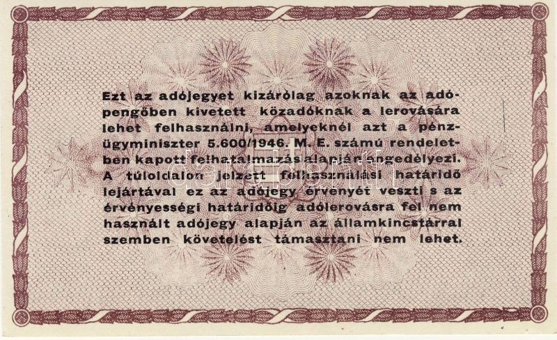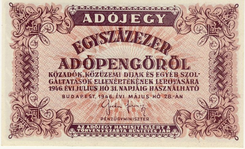 Leírás: 1946. 100.000AP fehér papíron, v.j. nélkül, hátoldalon lemezhibával T:I