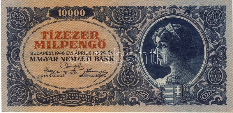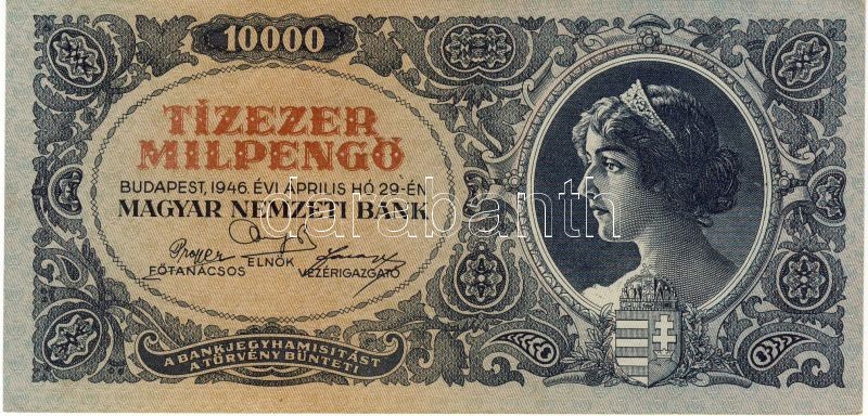 Leírás: 1946. 10000MP 3db színvariánsokkal, egyenetlen sorszámozással T:I