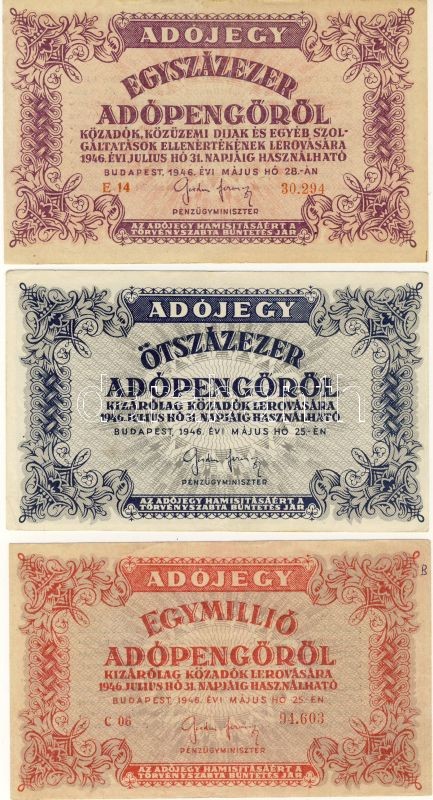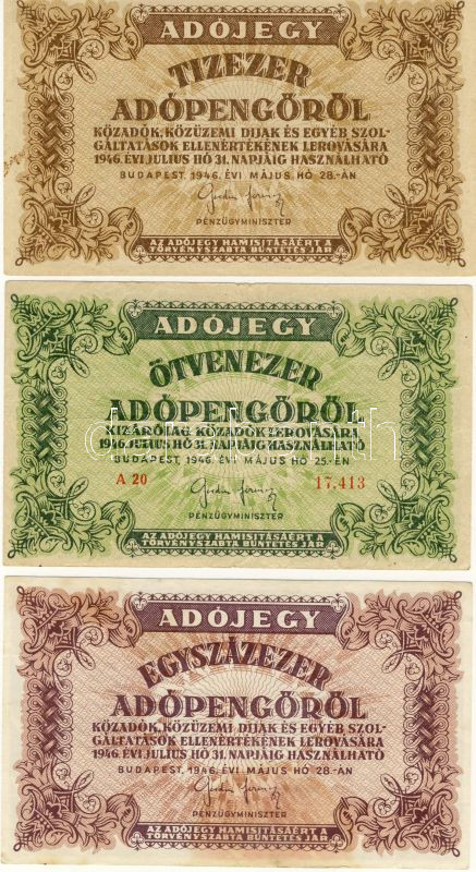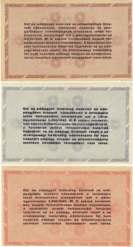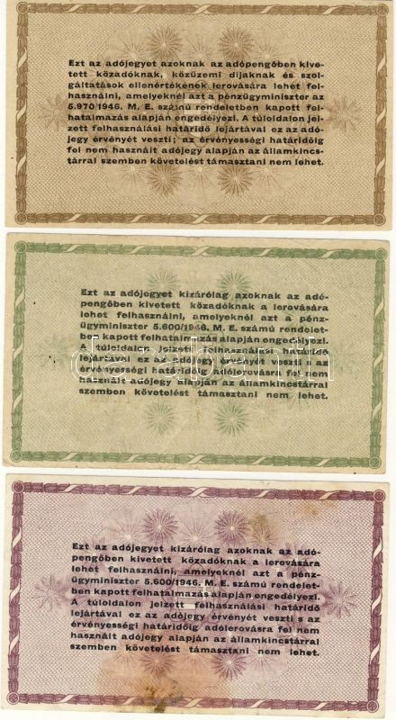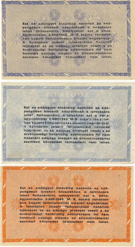 Leírás: 1946. 9klf Adópengő bankjegy variánsokkal T:I,II,III