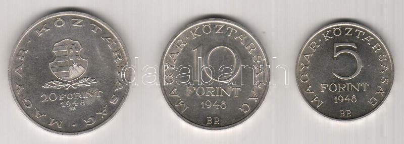Leírás: 1948. "Szabadságharcosok" sor 5,10,20Ft Ag T:1/2,2