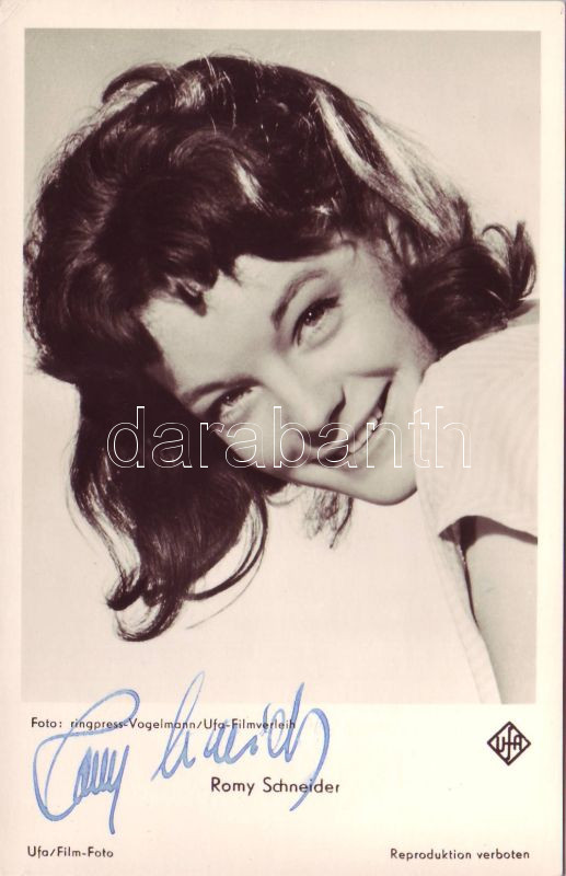 Romy Schneider képeslap eredeti aláírással https://www.darabanth.com/hu/63-Gyorsarveres/63.0/Festmeny-mutargy-papirregiseg-egyeb/Alairas-Signatures~277/Romy-Schneider-kepeslap-eredeti-alairassal~II124301
