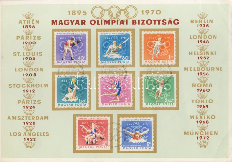 Leírás: Emléklap:Magyar Olimpiai Bizottság 1895-1970 sorozat emlékbélyegzővel (17970.IX.26.)